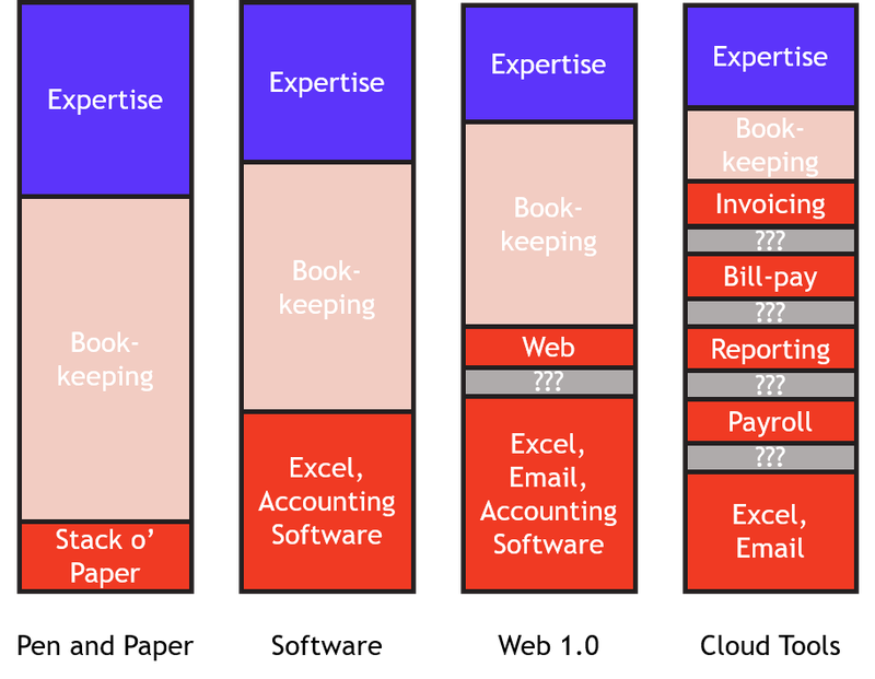 By the way, this isn’t just about taxes and reports anymore either. These tools are fundamental parts of your business. Your clients interact with them. Your product team designs around them. You need to understand their limitations, how they connect to each other. And if you’re building a disruptive business you’re unique by necessity; off-the-rack linkages likely aren’t going to cut it.
