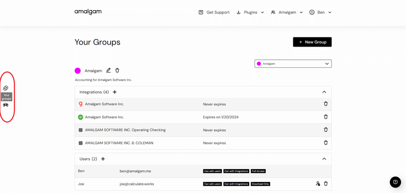 You can create a new group with the “+ New Group” button. Navigate between your groups by choosing the right group from the dropdown menu.