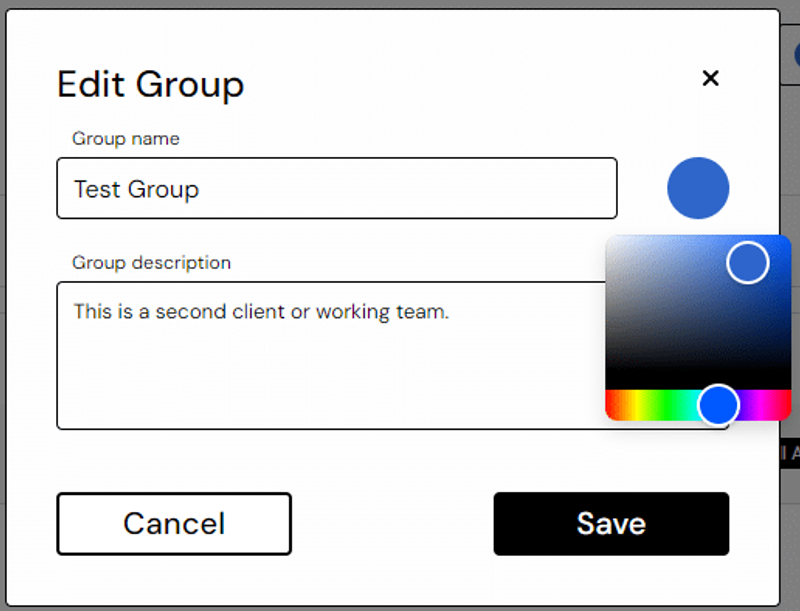You can edit information about your groups with the pencil button next to the group name. In this menu you can also choose a color for each group, to make it easier to identify from a long list.