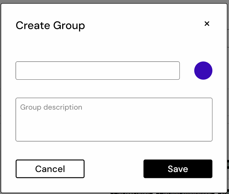 Creating a group requires only that the group get a name. Once created, you can add integrations and users to the group. Each user in the group will have access to all of the integrations in the group, based on the permissions level defined.