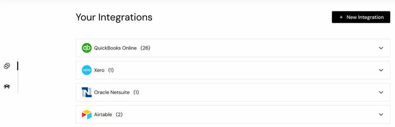 Click on the second option to pull up the groups screen. A “group” is what it sounds like, a grouping of integrations and users that work together. An example of a group might be a client of your firm – the group will contain that client’s data sources (GL, Bank, Payroll, Payments, etc.) and the users on your team who work on that client.